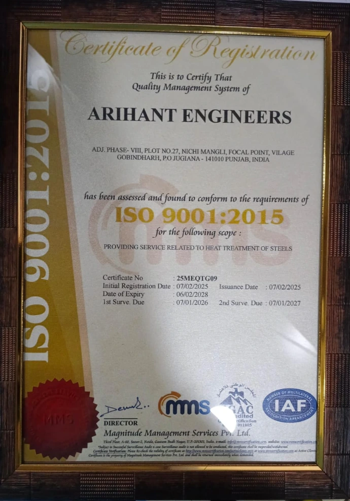 At ARIHANT ENGINEERS , we don't just treat metals; we unlock their highest potential . We are a leading provider of professional heat treatment services ;dedicated to transforming materials into components that meet the most demanding specifications for strength, durability and performance. In today's competitive environment, the integrity of your components is non-negotiable. That's why we combine decades of metallurgical expertise with cutting-edge technology to deliver precise, repeatable, and certified thermal processing solutions.